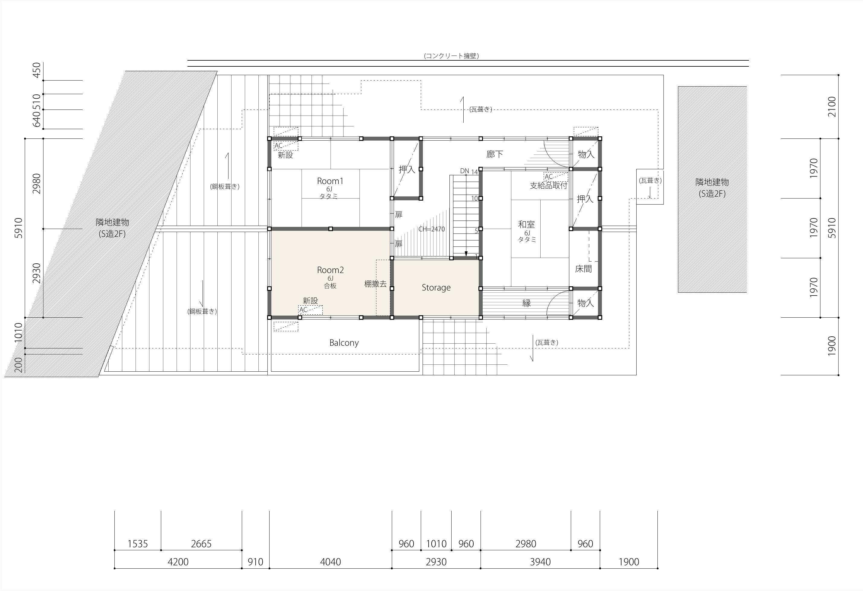 2階が宿泊スペース。1名~4名様が宿泊できる部屋を3部屋つくります。