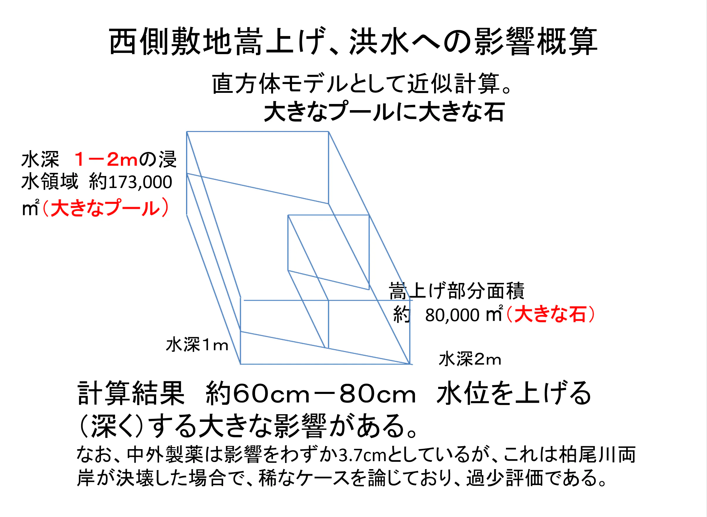 「中外製薬(株)の計画は,約8万㎡の広大な敷地に高さ2mの盛土によるかさ上げ工事が伴います。