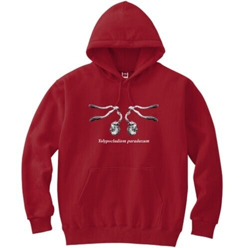 ◆冬虫夏草をデザインしたパーカーなど(黒、灰色、バーガンディ).