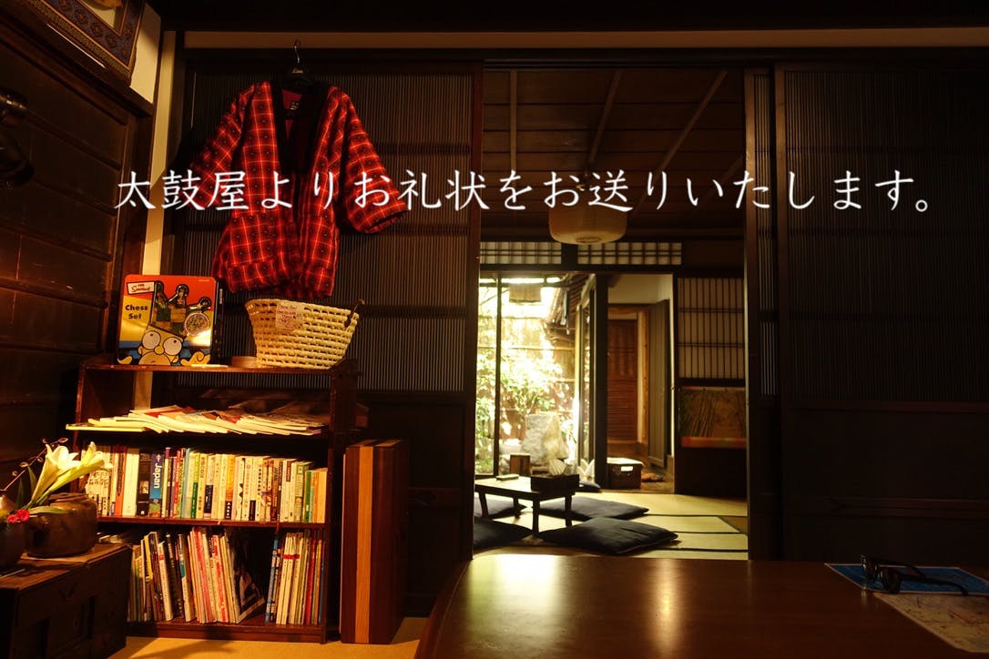 京都市中京区・烏丸四条と下京区・五条駅前で、それぞれ築140年と築180年の京町屋でゲストハウスを営んでおります太鼓屋と申します。