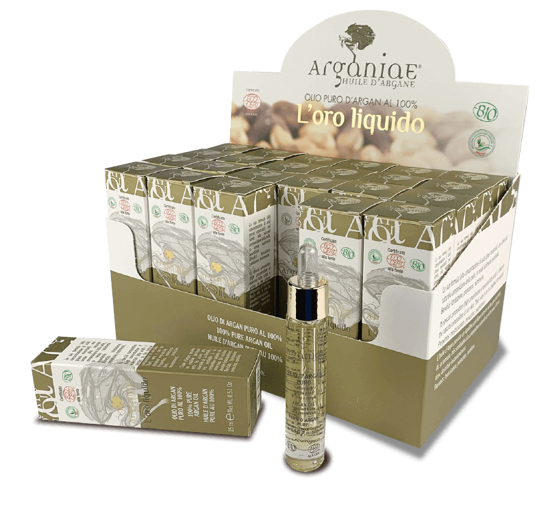 Arganiaeの商品は、科学的処理を行わず自然(オーガニック)に注力した職人のプロセスで生産しております。伝統的な低温圧搾法で時間を掛け、丁寧な作業で採油されたクオリティーの高いアルガンオイルだけを使用しており、このプロセスこそがArganiaeのアルガンオイルが高品質で世界中から長年大きな信頼を得られる根拠となっております。