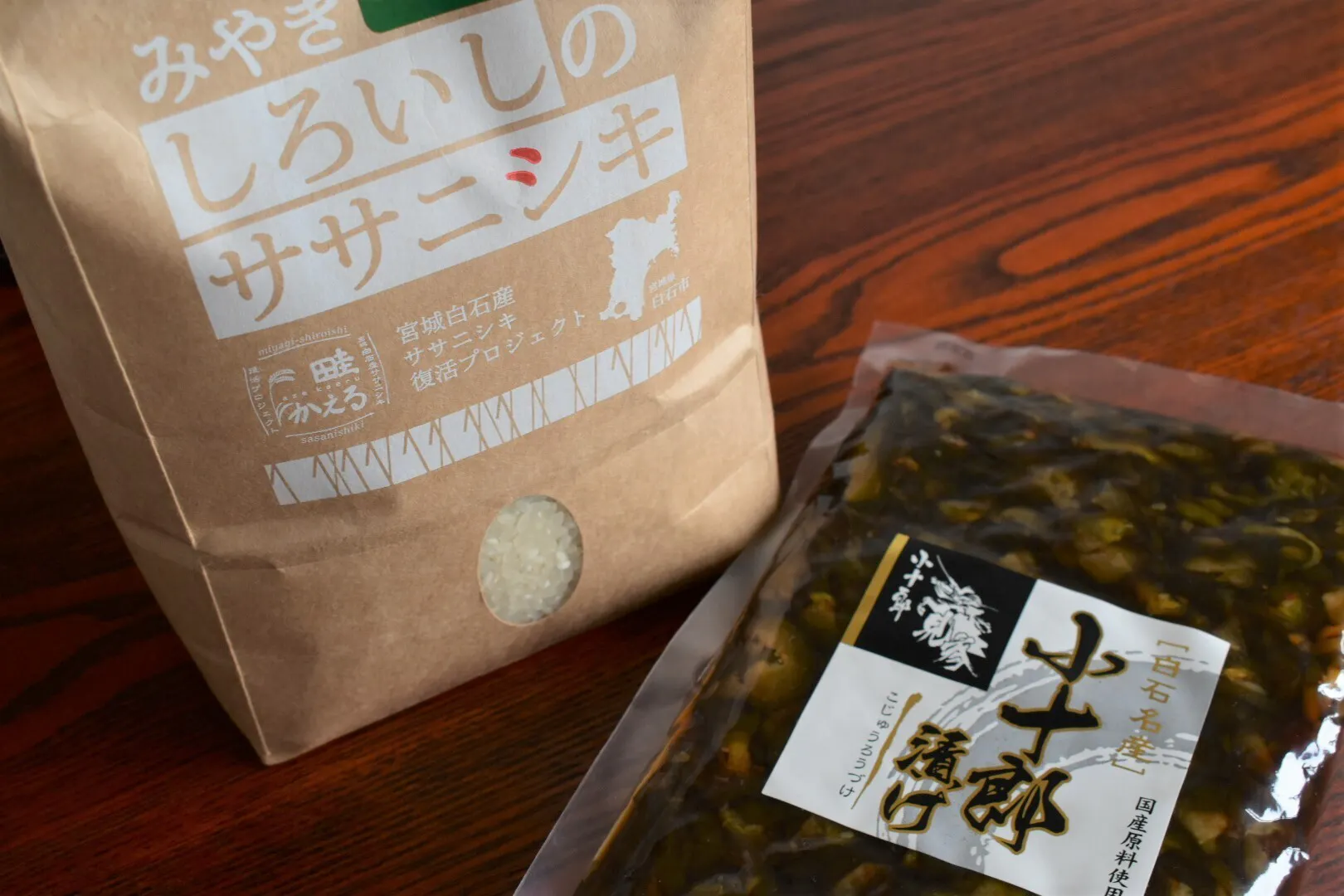 白石のササニシキ(天日干し)精米2kg + 小十郎漬 + 竹鶏たまご6個 +【謹製】竹鶏たまごかけごはんしょうゆ+サンクスレター