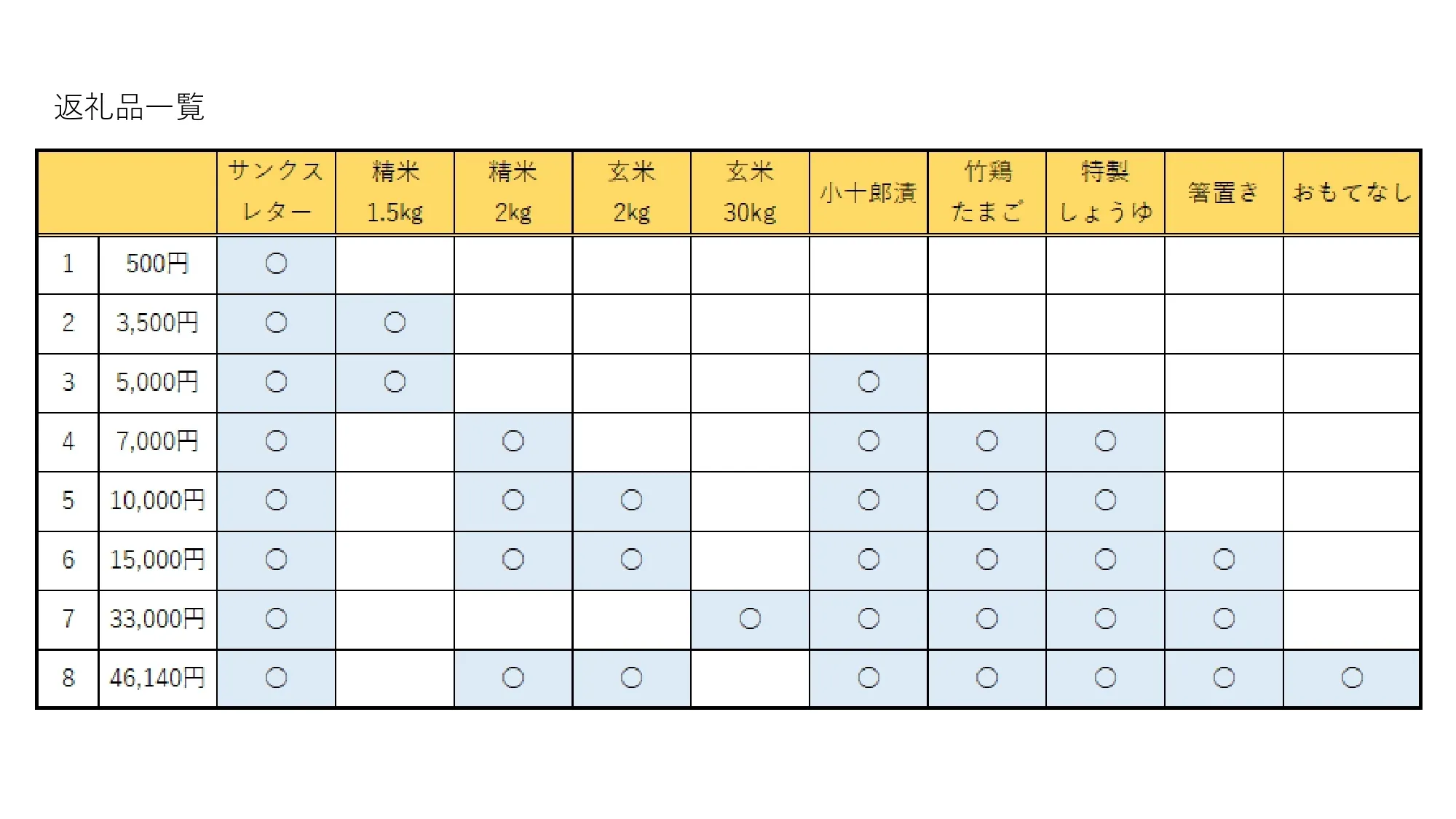 返礼品一覧