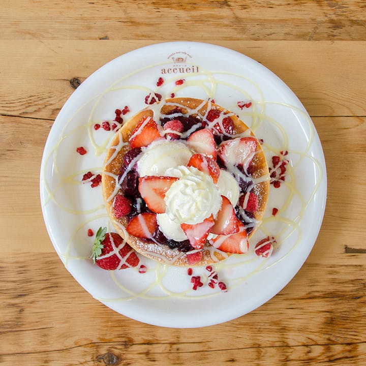 恵比寿・横浜にお店をかまえる、パティシエがつくるパンケーキとカフェごはんのお店、「カフェ アクイーユ」。