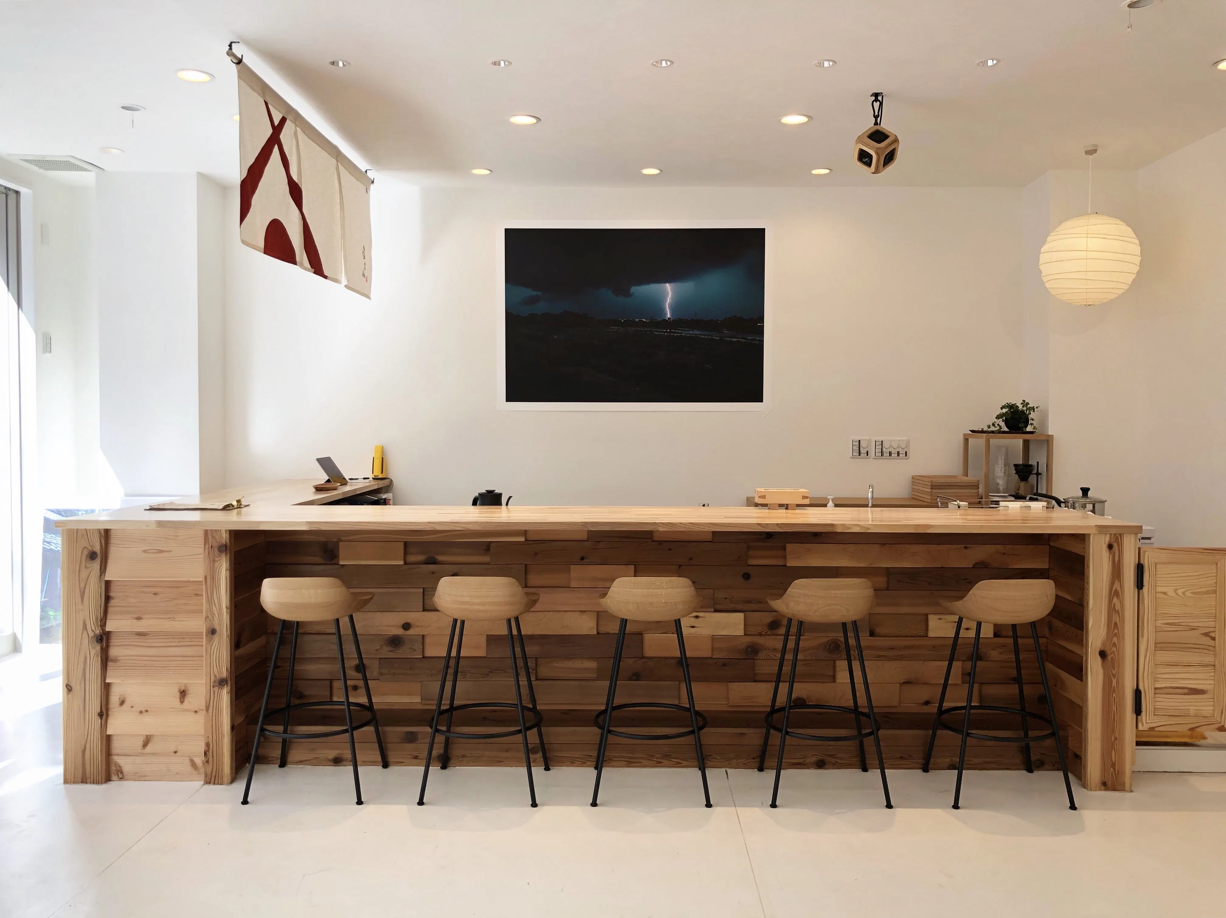 寿司職人を近年やってきましたが、元々建築学生から建築業、不動産業にも携わり、空間作りが好きな店主が自ら店舗の設計デザインをしました。そして展覧会の企画運営も店主が全て行っております。