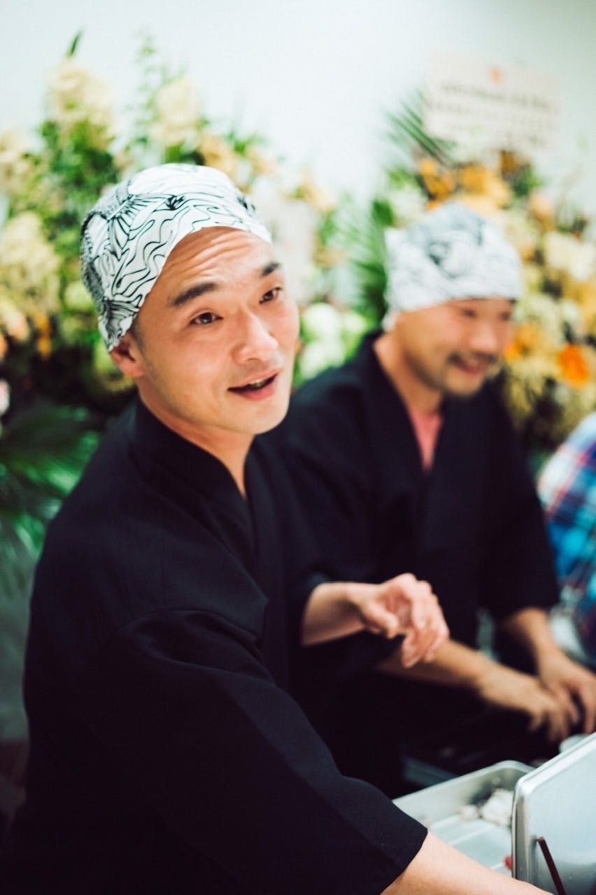 店主は、当あまねから徒歩1分にある創業49年 横浜元町三郎寿司の2代目でもあり、築地市場で10年ほど魚河岸の仲卸だったキャリアを持ち、築地市場時代後期はケータリングの寿司職人として都内〜横浜で活動。周りに昔からアーティストが多い環境から、ケータリング時代はレセプションパーティーや展示会などでも寿司を握り、寿司なら煙も出ないし、作品に匂いも付かずアートと共存出来ると思い2年前に思い切ってオープン。
