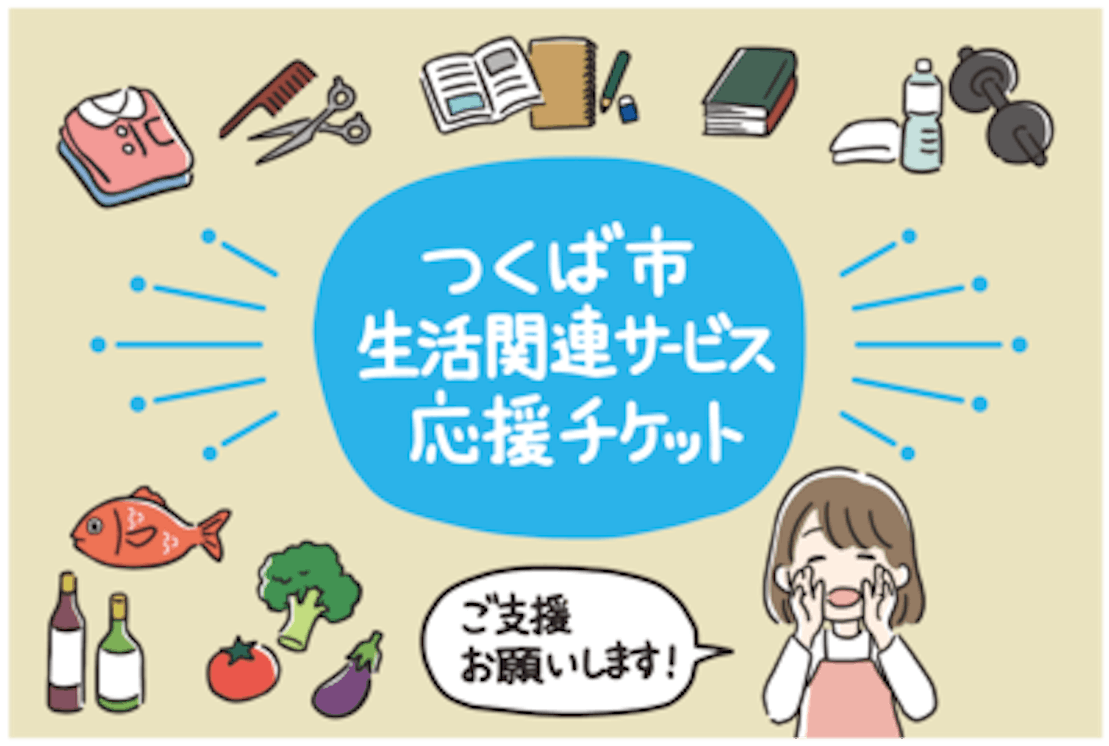 「生活関連サービス応援チケット」は、つくば市内生活関連サービス事業者で使用できるチケットを購入いただき、そこに2割上乗せしたチケットを支援者にお送り し、その売上を事前に生活関連サービス事業者にお渡しする事業です。