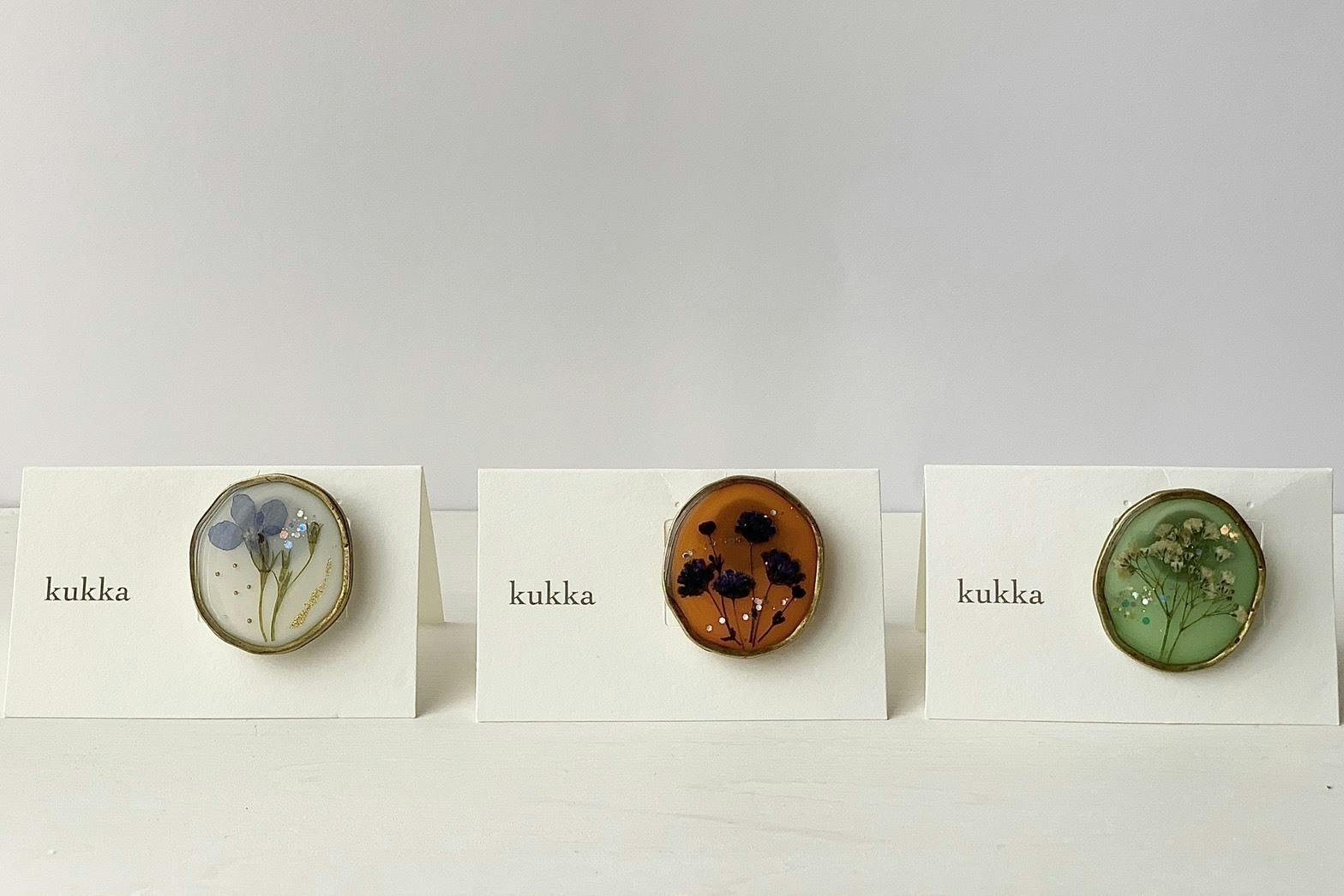 ブランド名は『kukka』クッカといいます。フィンランド語で"花"という意味で、ピアス、イヤリング、ブローチを展開しています。