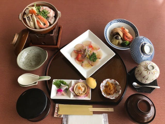 【前菜2品・お刺身盛り合わせ・蓋物・蒸し物・陶板焼・ご飯・漬物・お吸い物】
