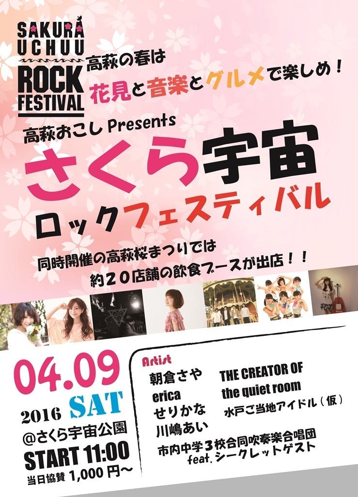私たちはこの度、高萩市衛星通信記念公園(通称:さくら宇宙公園)において、「さくら宇宙ロックフェス」と銘打って桜咲き乱れる中、音楽イベントを楽しめるという企画を立案、制作して参りました。