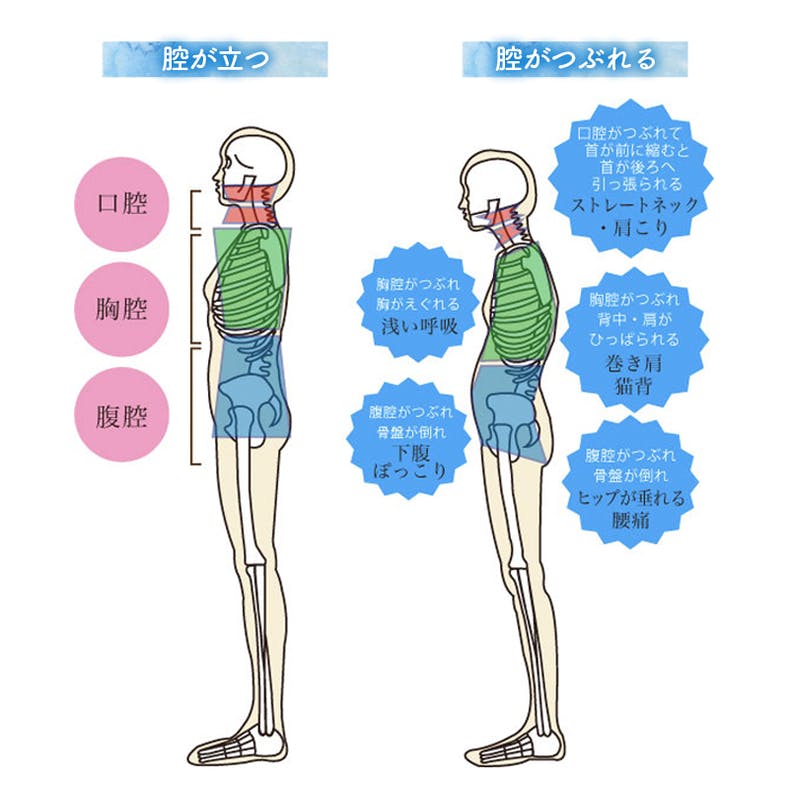人間の体はいくつかの大きな「空間」=腔(くう)で形成されています。(口腔・胸腔・腹腔)