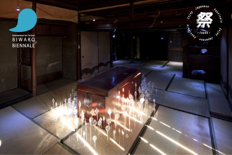 BIWAKOビエンナーレは今年で7回目の開催となります。この芸術祭は、国内外のアーティスト約65組を滋賀県に招待し、地域住民との協力で使われなくなった江戸期から続く日本家屋を修繕した上で、そこを会場として使用し、様々な作品を展示する内容となっております。