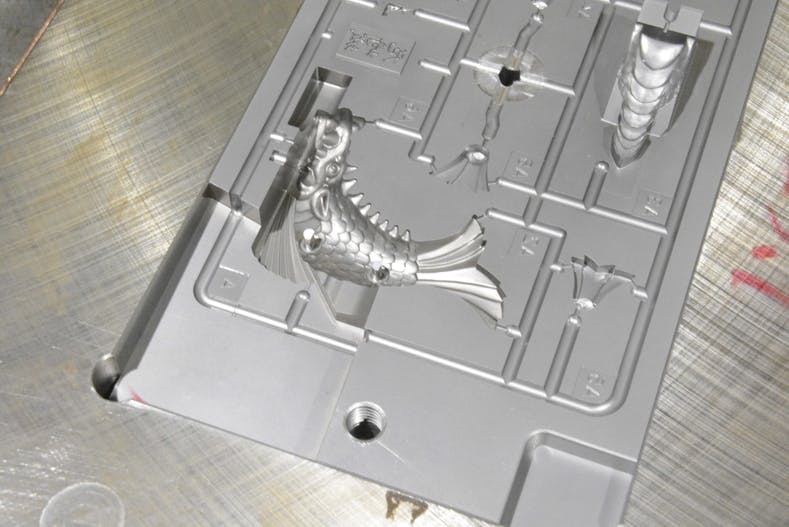 <シャチホコプラモの金型。切削と放電加工を組み合わせて制作>