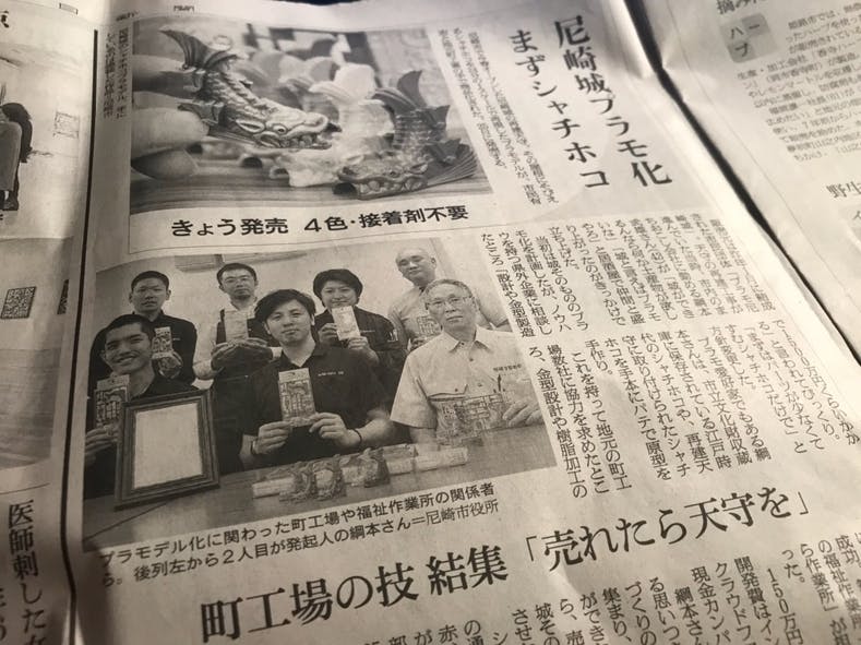 2018年暮れのクラウドファンディングでいただいたご支援により、尼崎城シャチホコのプラモデルは無事発売の日を迎えることができました。戸田氏鉄が江戸幕府より尼崎への転封を命じられた元和3(1617)年から、ちょうど402年目にあたる2019年7月25日のことでした。クラウドファンドのリターンイベントでお目にかかりました支援者のみなさまからの熱い激励を弾みにして、ブラッシュアップに努めることができました。この場を借りて御礼申し上げます。