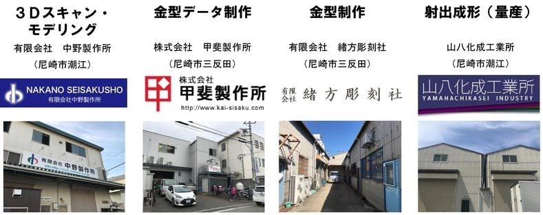 ・部品設計と精密切削技術による金型の制作、樹脂の射出成型による量産、パッケージや組み立て説明図のデザインなど、ものづくりのまち・尼崎市内の事業所が連携して工程を分担し、新しい尼崎のおみやげを生み出します。