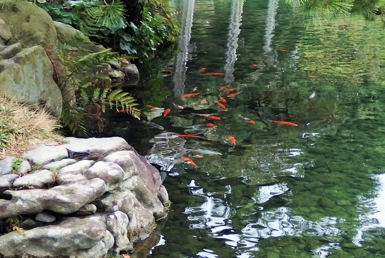庭園の中で鯉を飼う風習は、平安時代からで、色鮮やかな錦鯉も江戸時代には見られ、明治以降は様々な模様の錦鯉が誕生しました。