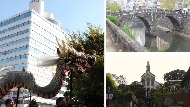 ▲(左)龍踊り (右上)眼鏡橋 (右下)大浦天主堂