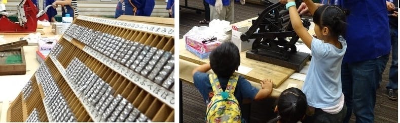 ▲(左)毎年9月に実施している活版に関するイベントの様子 (右)実際に自分で印刷体験ができます。
