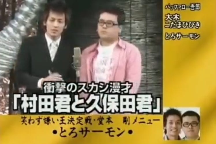 中学2年生だった私は同じ野球部の友達の家に泊まりに行き、一緒にテレビを観ていました。「めちゃめちゃイケてる」という番組の「笑わず嫌い王決定戦」という企画に出てきたそのお笑いコンビは「スカシ漫才」と呼ばれる新しい芸風で、出演していたナインティンナイン、堂本剛、国文太一から大爆笑を取っていました。