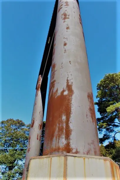 1,第一鳥居の塗り替え工事 ご本殿と同じ朱の色に塗り替えます。