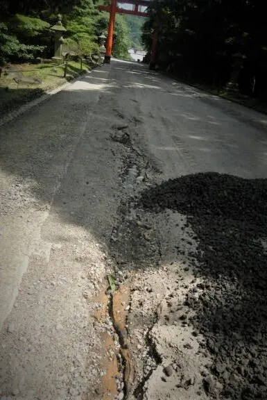 2,表参道の改修工事 砂利の流出した表参道を 歩行のしやすい舗装路面といたします。