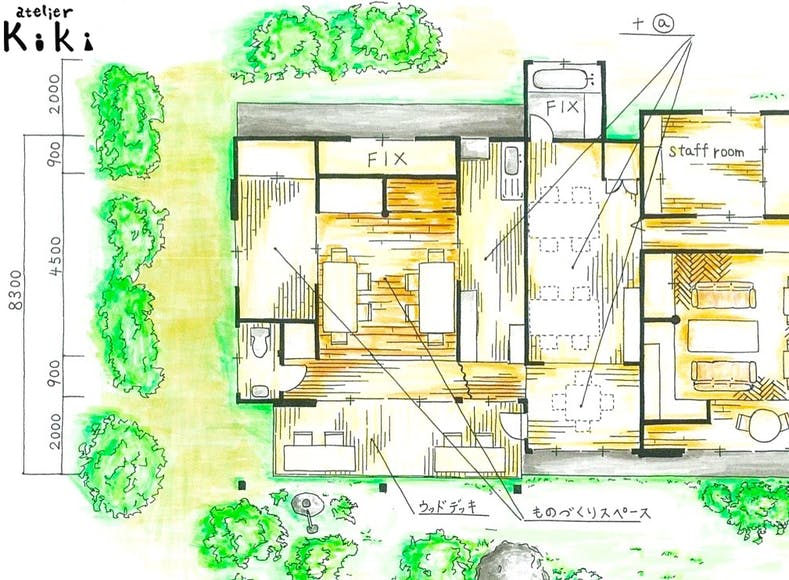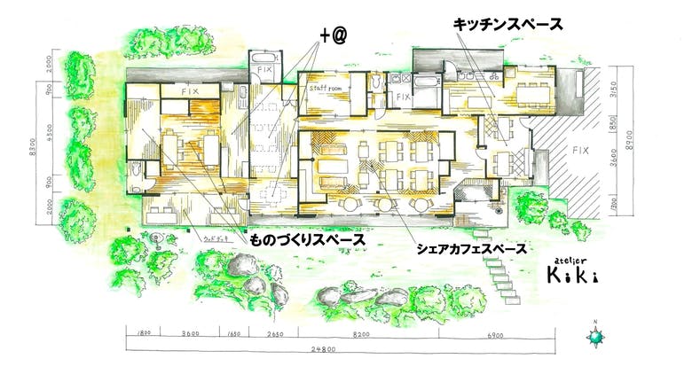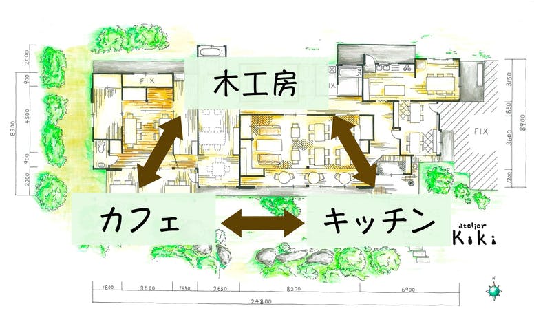 そしてアトリエKiki全体のイメージ平面図がこんな感じです。