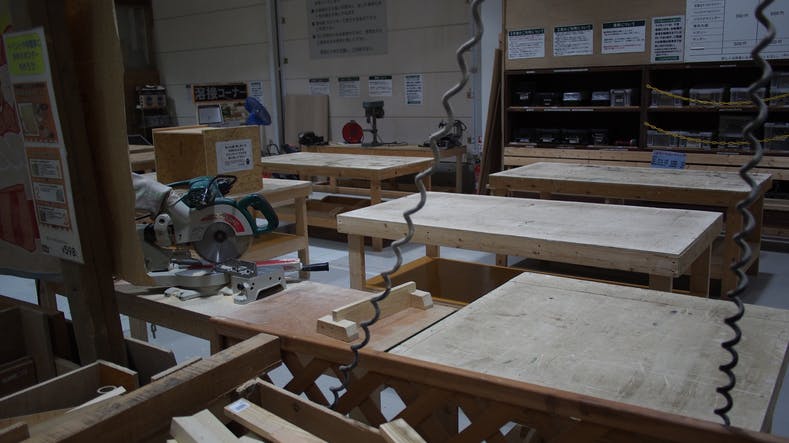 ホームセンターなどで作業スペースが完備されているところもありますが、危険な大型機械しか置いて無かったり、子供たちでも使える 手道具が完備されているところは少なく、どちらかというと大人向きな作業スペースでしょう。
