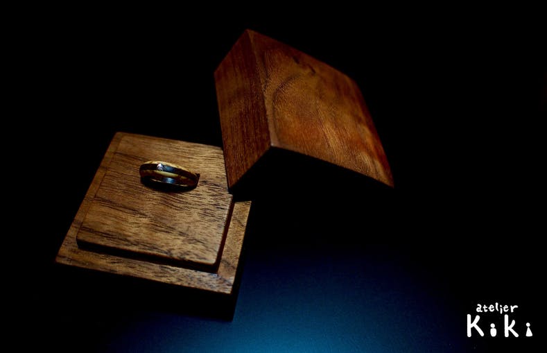 親友夫婦のプロポーズをする際にオーダを頂いた金属アレルギーの奥さんの為の木の結婚指輪。