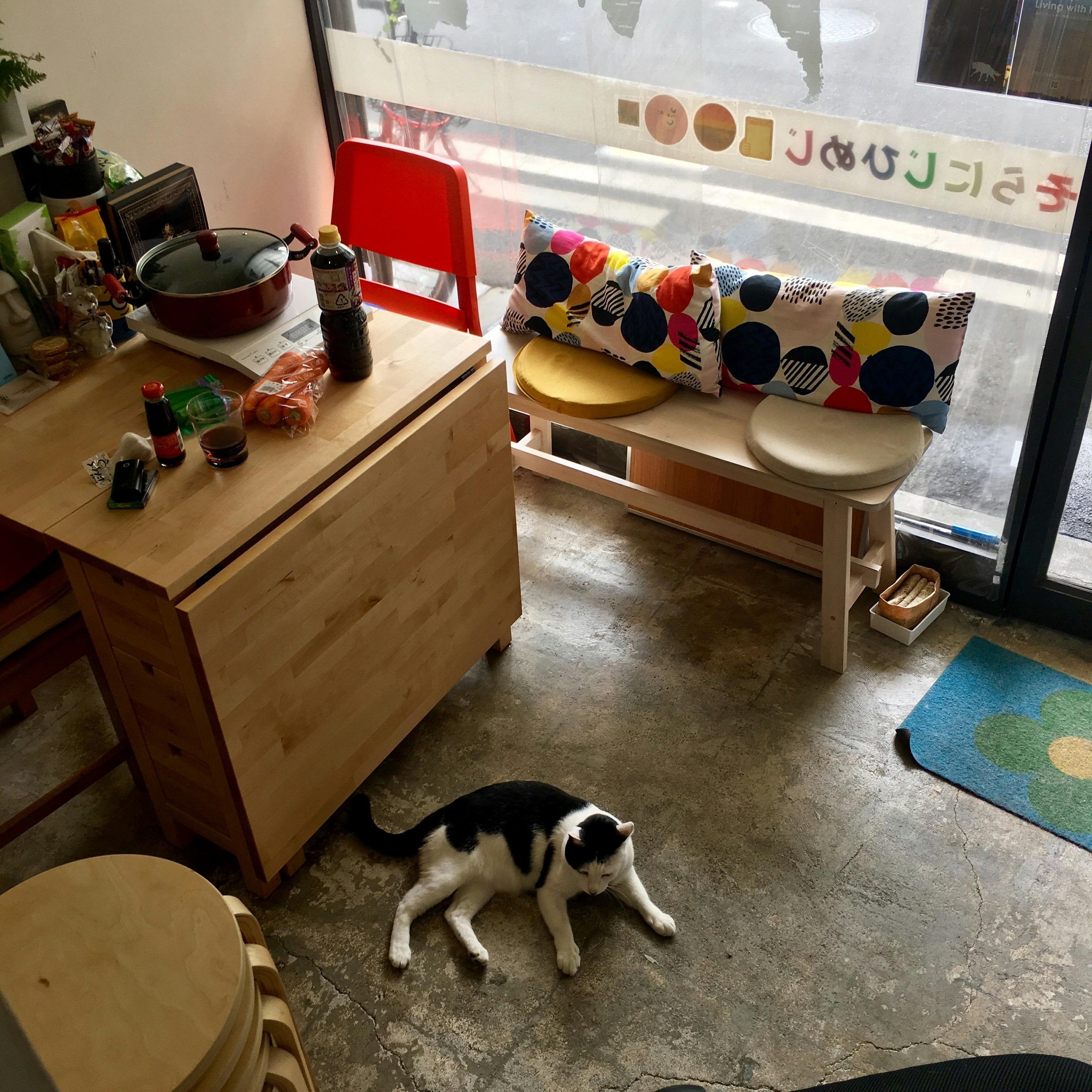 旧そらにじひめじの内部と保護猫で店長の「はるたん(オス・推定5歳)」
