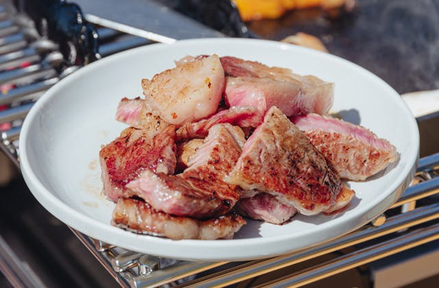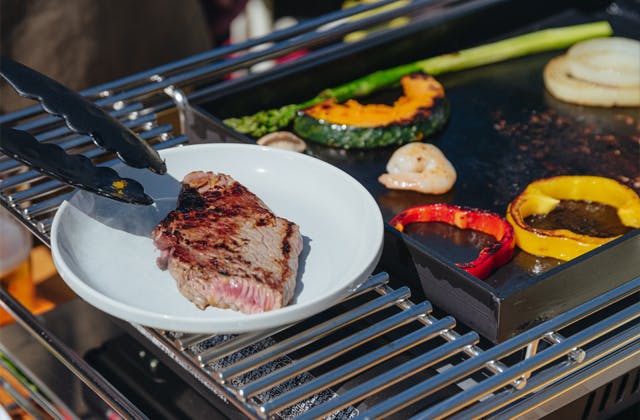 例えば市販のバーベキューコンロに付属している鉄板は概ね1~2mm程度の厚みです。鉄板が薄いと予熱で温度を上げていても、お肉をのせると焼き面の温度がある程度下がり、中身まで熱を通すのに時間がかかります。厚いお肉を焼くときに表面はよく焼けているのに中身はまだ火が通っていなかったことはありませんか?