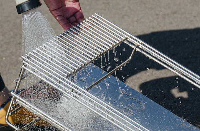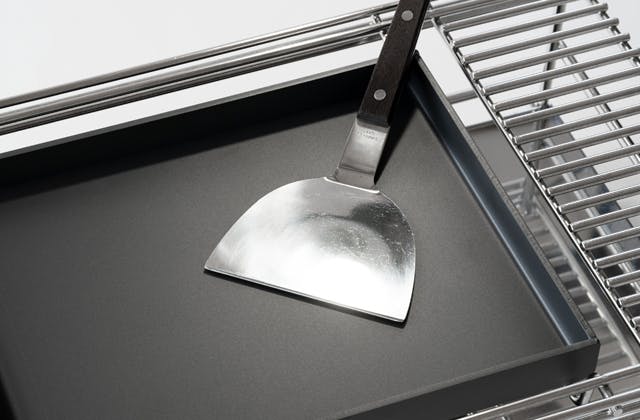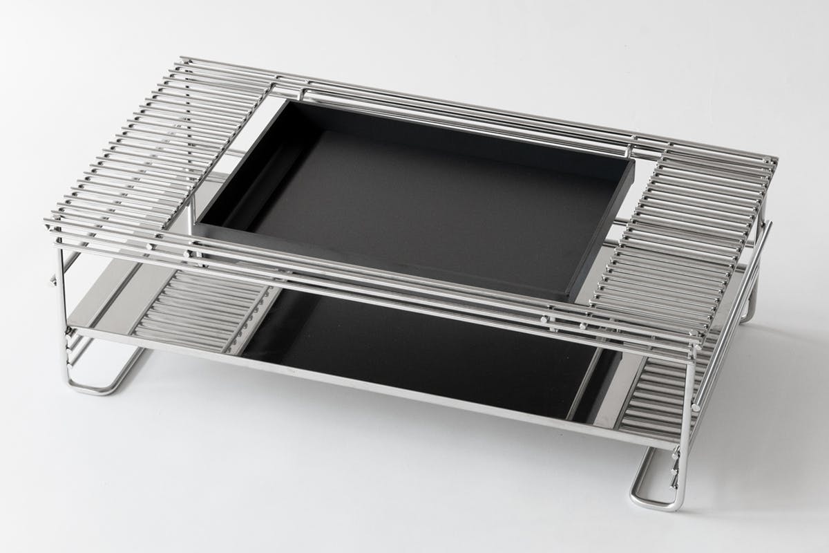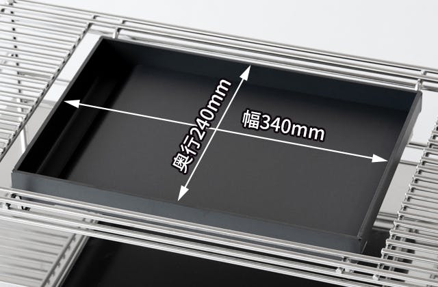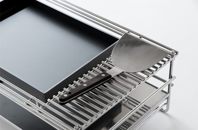 ステンレス製ラックの天板部分は、熱くなった鉄板に触れない為のガードの役割を果たします。また、ステンレスワイヤーを使用することで、熱気がこもらず空気中に分散するためにラック自体が熱くなることもなく安心してお使いいただけます。