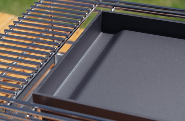 鉄板の一方にはポケットのような段差を設け、不要な油を落としたり調理中のクズが集めやすい、使いやすい形状としました。