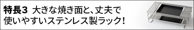 (3)大きな焼き面と、丈夫で使い易いステンレス製ラック!