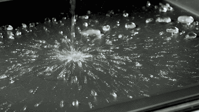 予熱した鉄板に水を注ぐと勢いよく弾けて蒸発します。(高い蓄熱性)