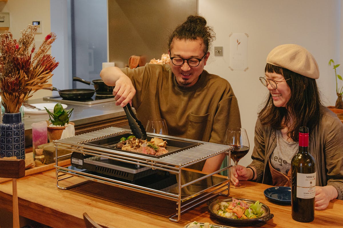 (1)熱源がカセットコンロだから、おうちのどこでも気軽に鉄板焼き!