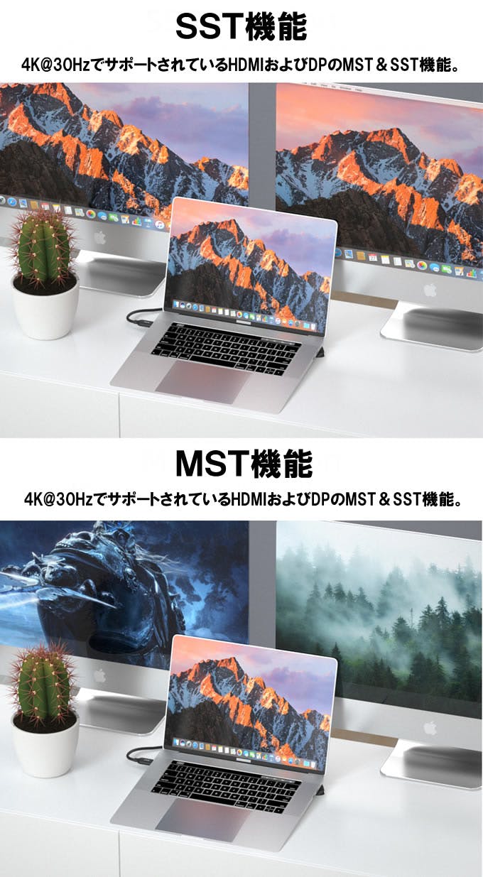 4K@30HzでサポートされているHDMIおよびDPのMST&SST機能。