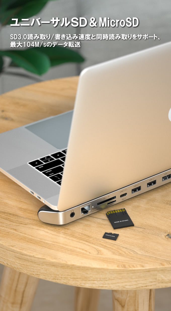 ・SD / microSD:SD 3.0読み取り/書き込み速度、同時書き込み、プラグアンドプレイ