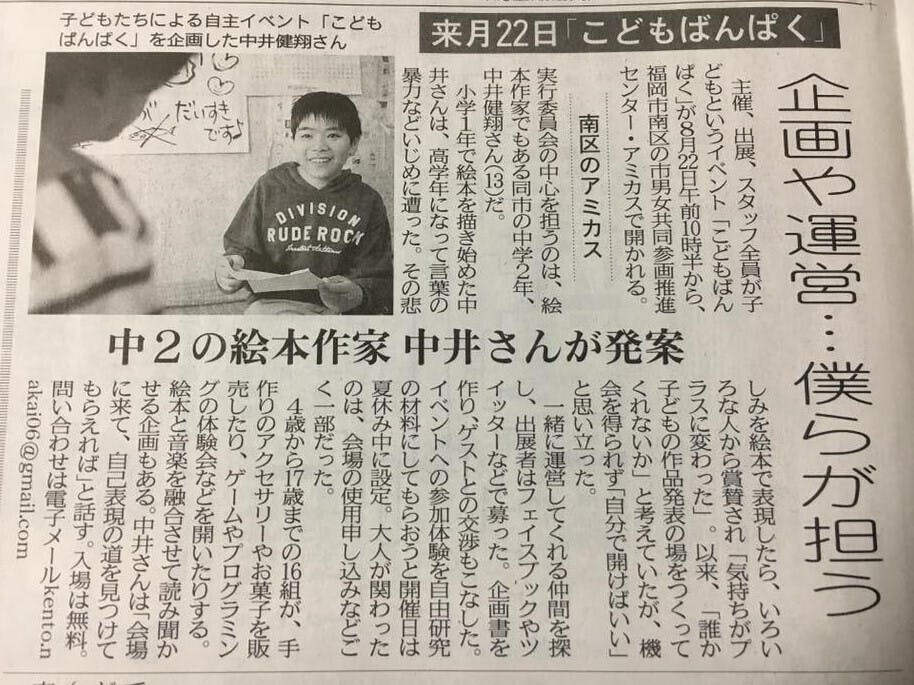 中井けんと君が中心となり、中学生ながらにクラウドファンディングで資金調達をし、地元テレビ局や新聞社など、多くのメディアに取り上げられ、注目を浴びました。