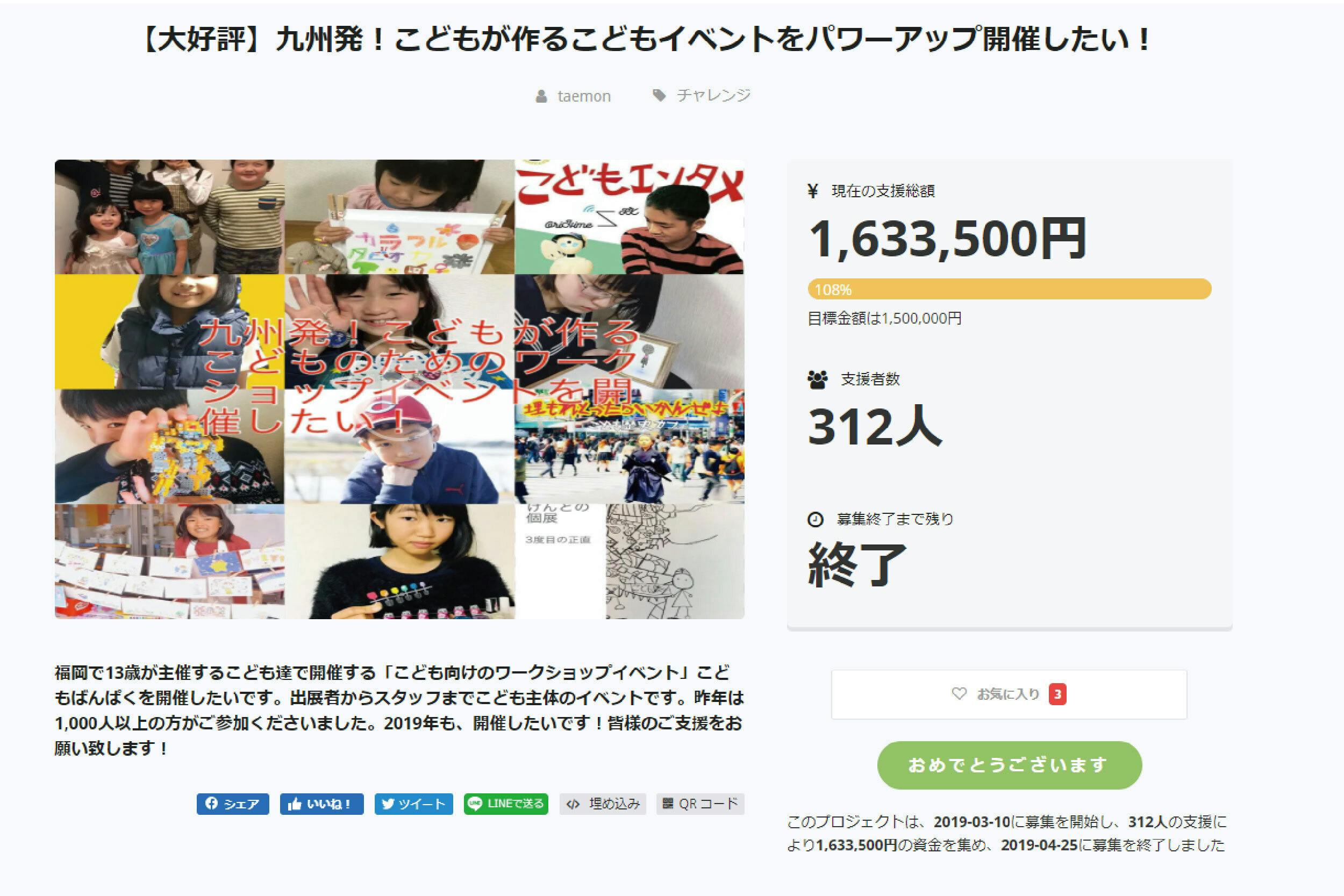 私はITのお仕事を通じ、働きにくい方々が活き活きと活躍できるプラットフォームを提供している会社を経営しています。このプロジェクトは、実際にあったイベントをモチーフに製作する映画「こどもばんぱく」の製作支援プロジェクトです。