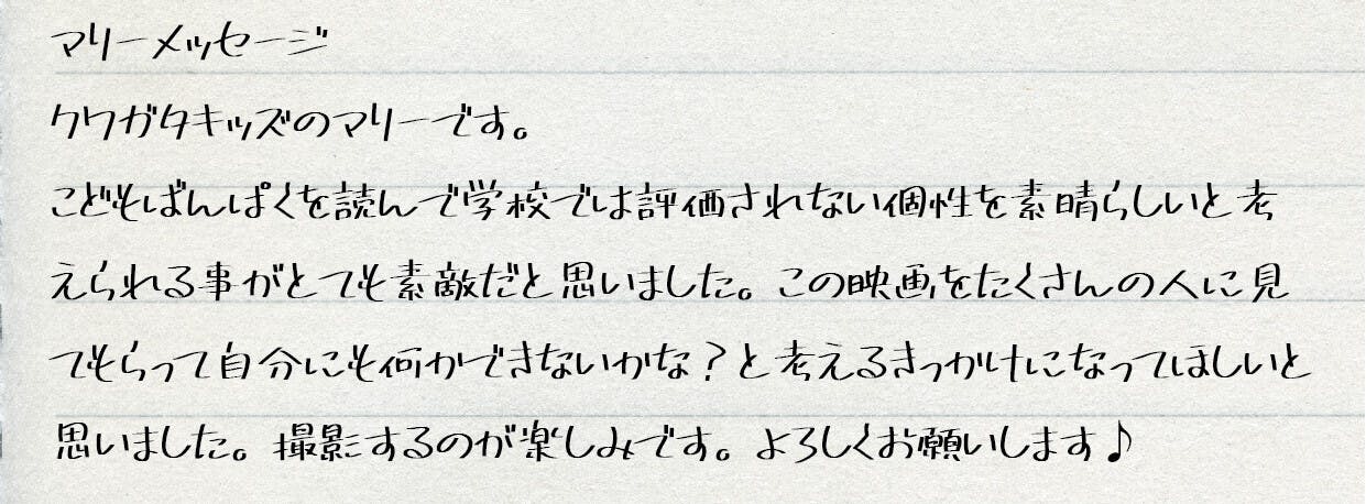 なので今回映画化は本当に嬉しいです!!僕自身も、伝えたいものを音楽で届けたいと思います!