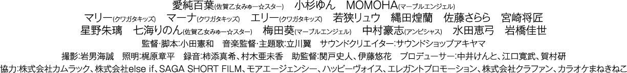福岡を拠点に活動し、国際映画祭で評価を得た小田憲和を監督・脚本を務め、福岡、佐賀、長崎のそれぞれの県を盛り上げるために活動するこども達が出演します。主題歌・音楽監督にはインディーズながら福岡国際会議場をはじめ宮崎・東京・大阪と全国ツアーを大成功させた宮崎県出身のアーティスト、立川翼を迎え、アジアフォーカス福岡国際映画祭招待作品「翔べない鳥も空を見る。」の制作チームが再び集結しました。