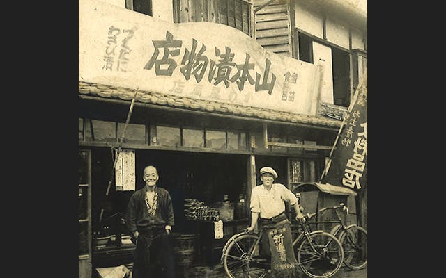 二代目の祖父が太平洋戦争で出兵していた満州でマラリヤにかかり生きる気力をなくした時に、同郷のわさび生産者の戦友に「生きて帰って俺の作ったわさびでわさび漬けを作ってくれ」その言葉で奮起して生き延び帰還、山本漬物店としてわさび漬けの製造を始めました。
