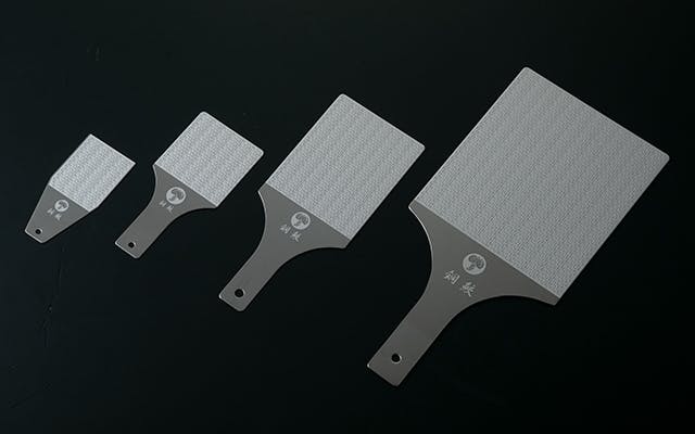 『鋼鮫』のおろし面にはひらがなの「わさび」の文字が施されていますが、当初からあのデザインではなく三角、四角、星形など200種を超すデザインの末にたどり着いた形です。