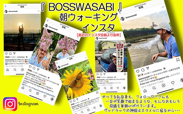 毎朝たくさんの方々から「いいね」をいただいております。そしてそれはフォローワーのみなさんからの応援エール。きっとインスタグラムがなくて自分の意志だけだったら決して継続できていない事と感謝でいっぱいです。(インスタグラム/bosswasabi)