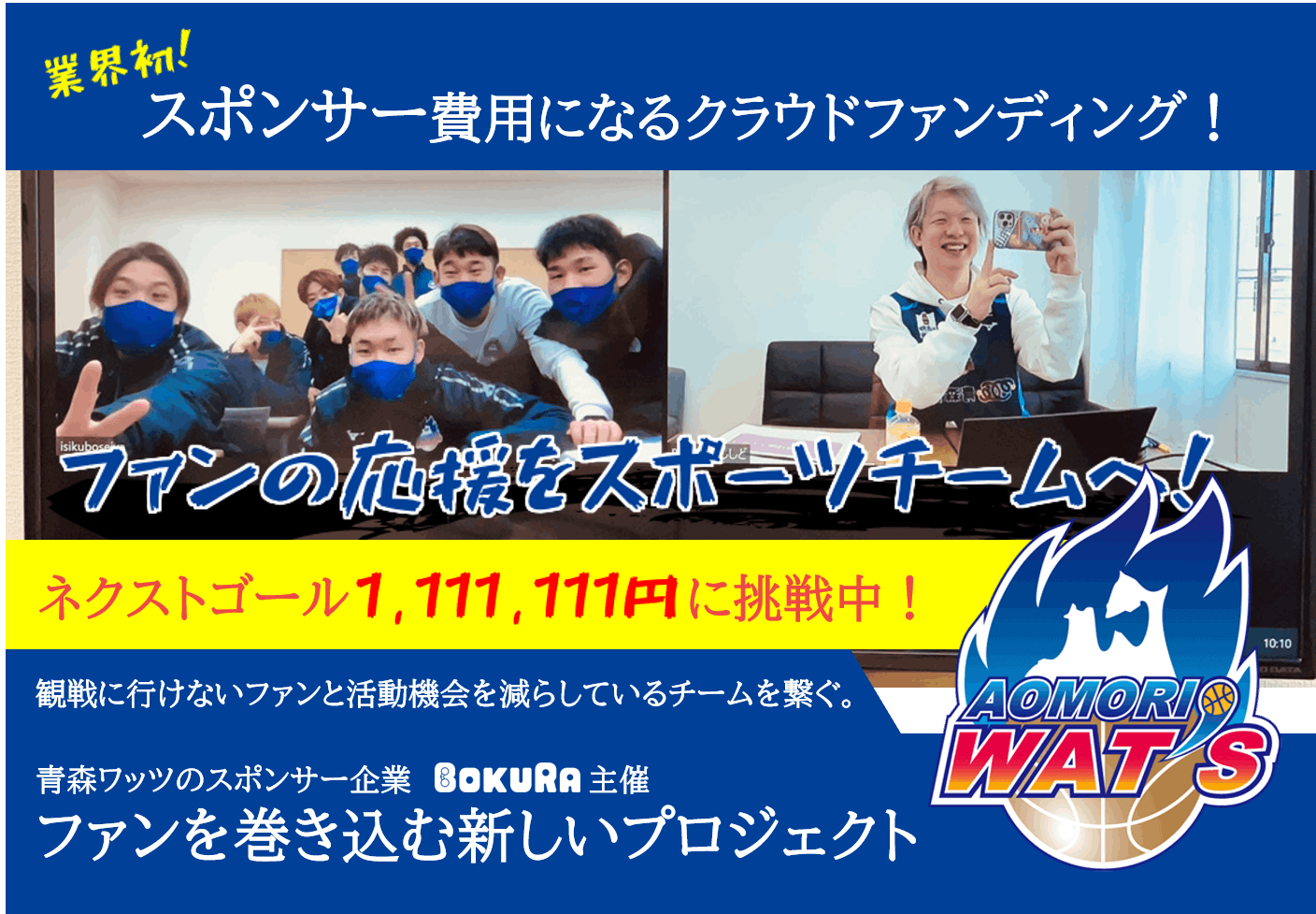 バスケットボールのB LEAGUE 青森ワッツへのスポンサー支援として、下記を検討しています。