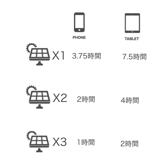 ※太陽との距離、角度、季節によって充電速度が違います。