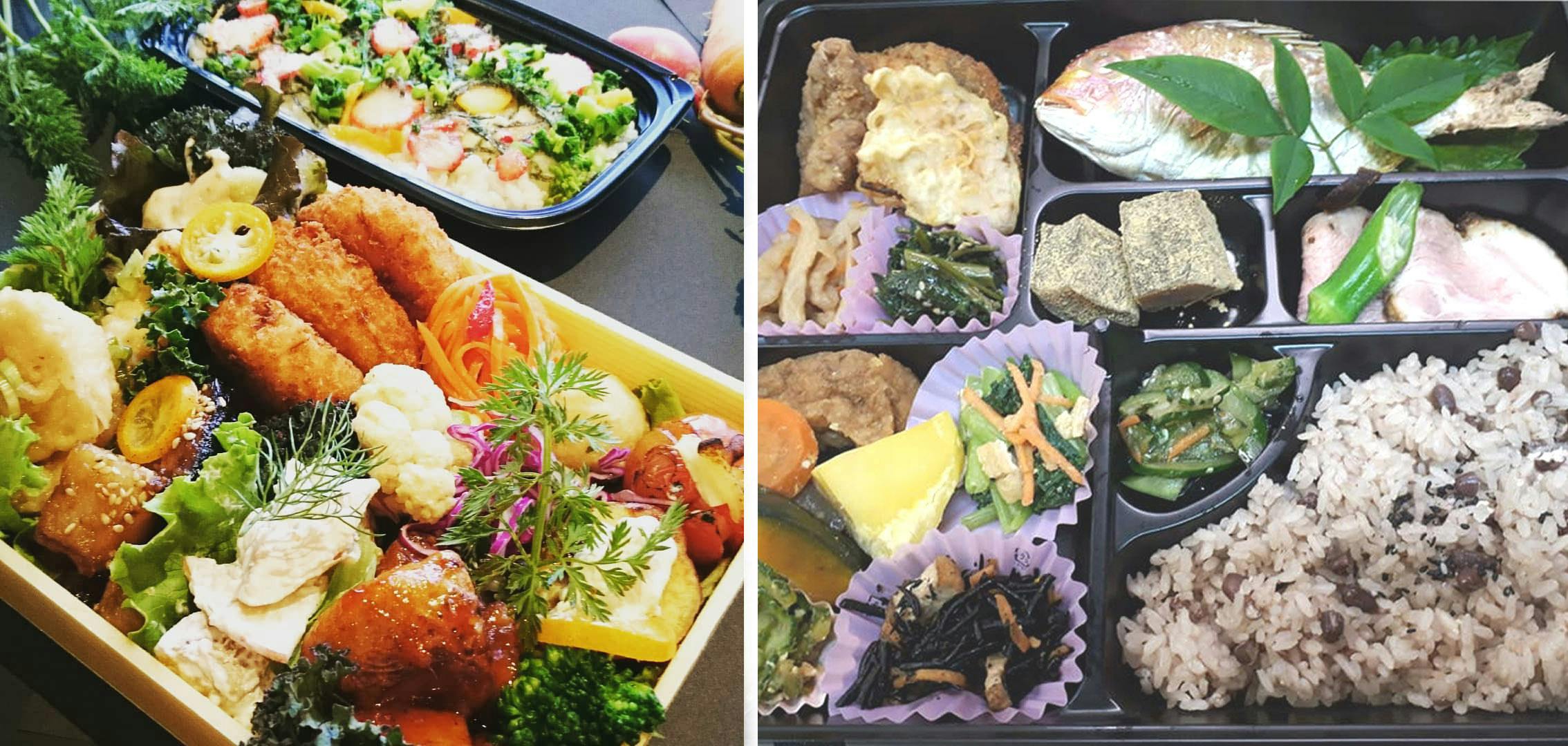 ↓ 人気店ダンザパデーラさんの50菜弁当 ↓ 惣菜畑がんこさんの地元の食材を使ったお弁当