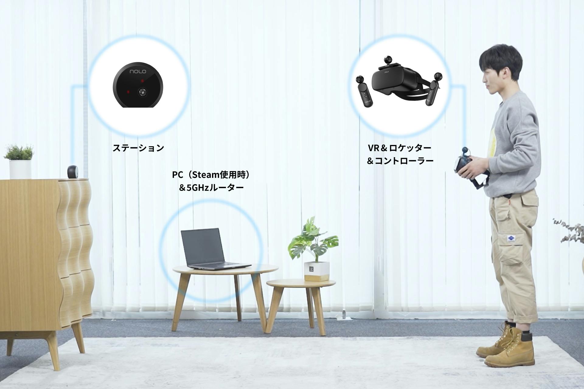 NOLO VRでは、要件を満たすPC上でSteamを駆動させ、5GHzルーターで接続することにより、たとえスマホであっても、ワイヤレスでSteam上の6DoF・VRゲームをプレイすることが可能です!