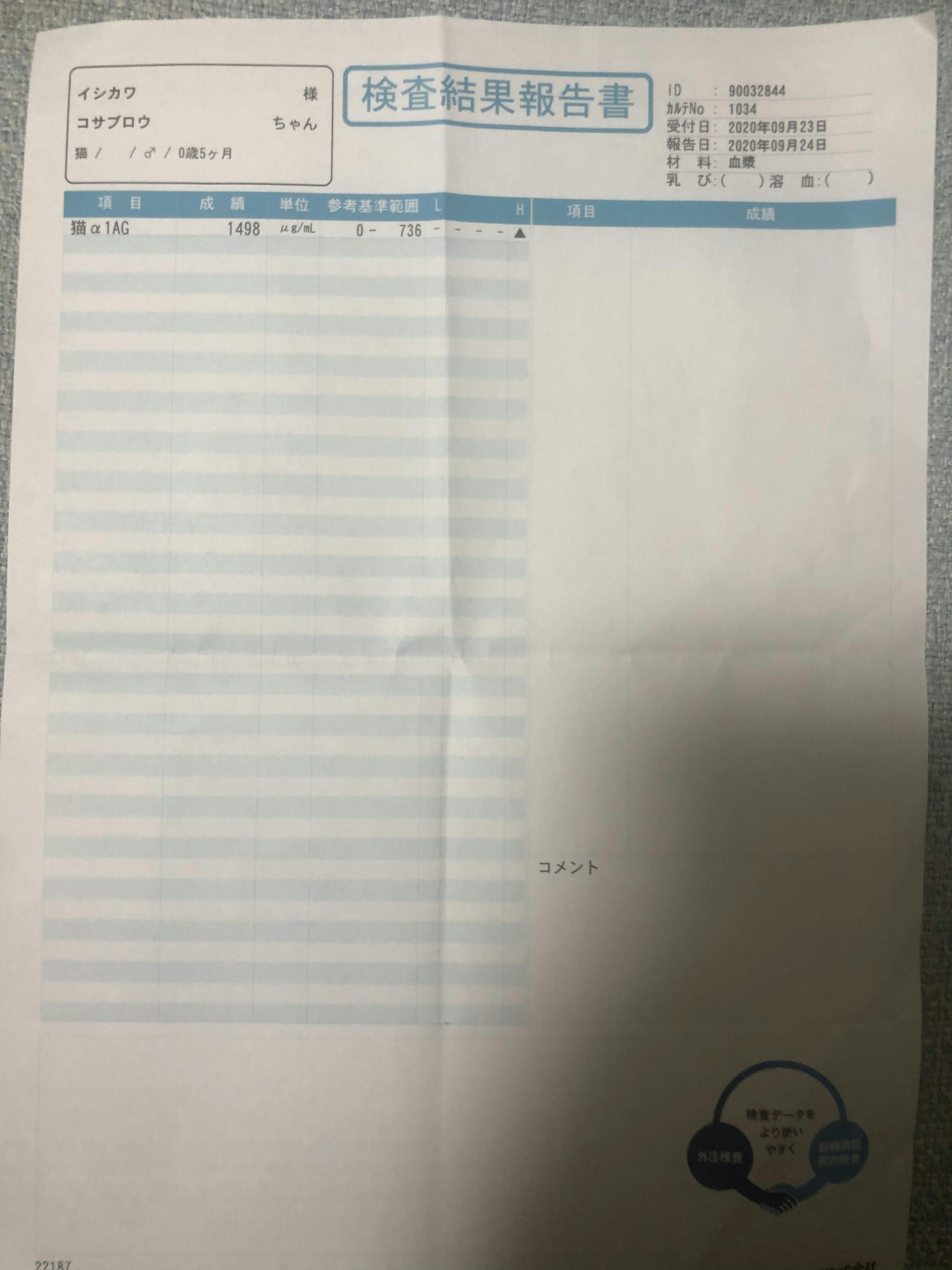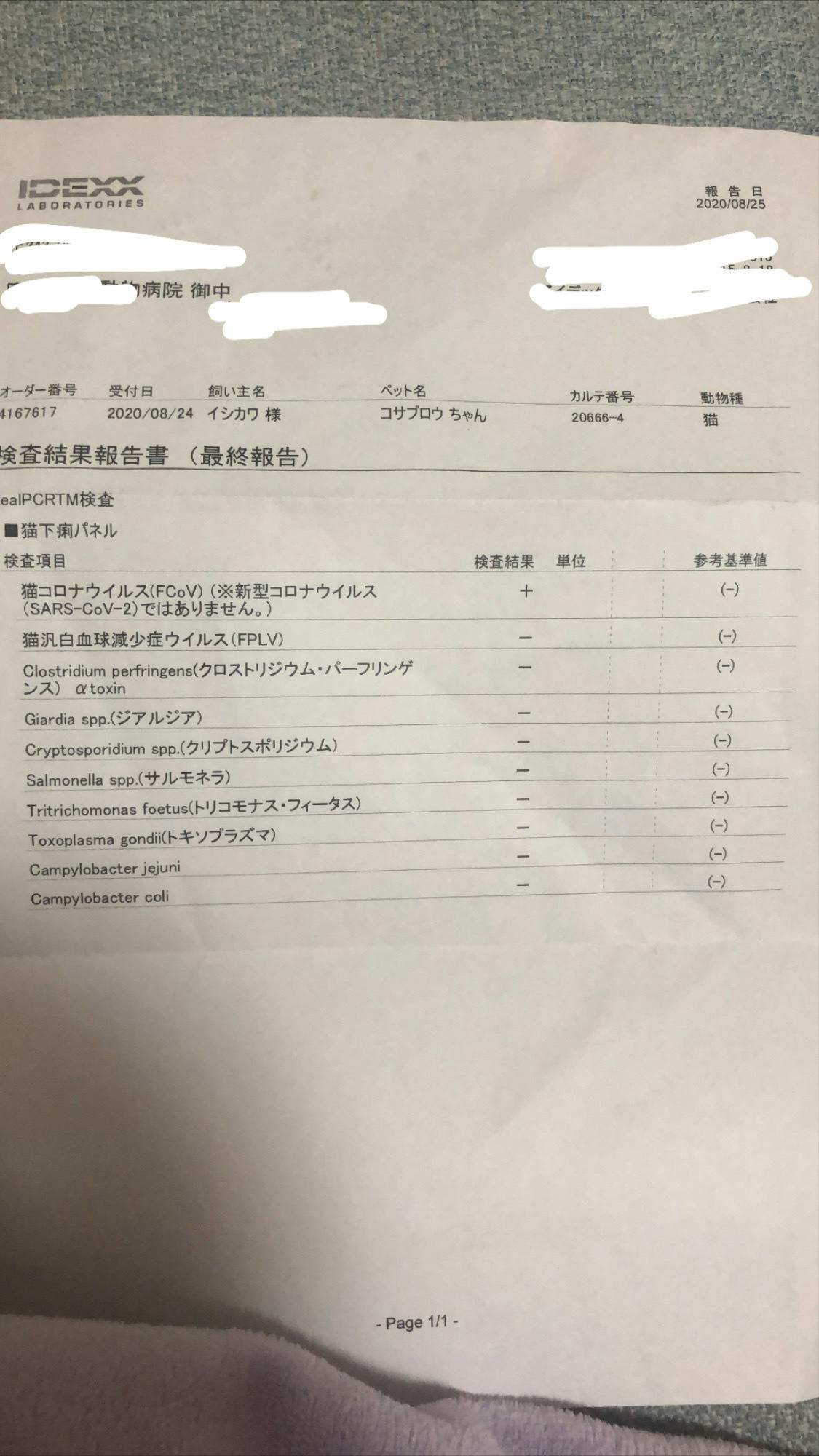 炎症の値が71.7もありFCoV抗体値が1600倍でした。