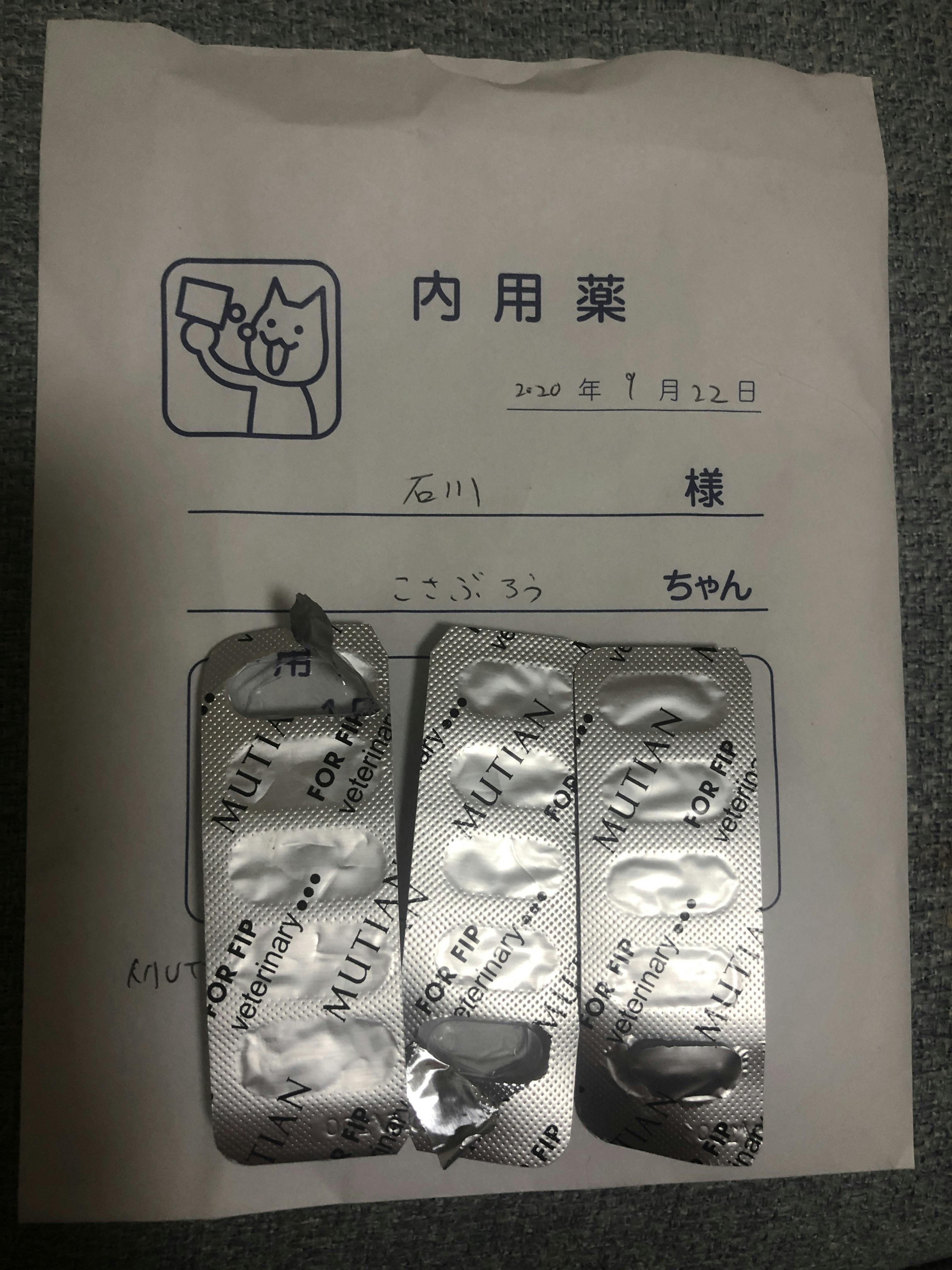 かかりつけの病院では、熱が1カ月さがらないのと検査結果含め、FIP発症と言われました。もしかしたらそうかもしれないと心の底では、わかっていましたが信じたくない気持ちと受け止めなきゃとゆう気持ちが混ざって涙がとまりませんでした。でもこのまま何もしないで死ぬのは、嫌だと思い、ネットでFIPについて沢山調べました。そしたらムティアンとゆう日本未認可の薬があるとゆうこと!ブログで回復してる猫ちゃんたちをみてわたしも希望があるならかけてみたいと思い、すぐ予約をとってムティアン協力病院にいって検査をしてもらったら